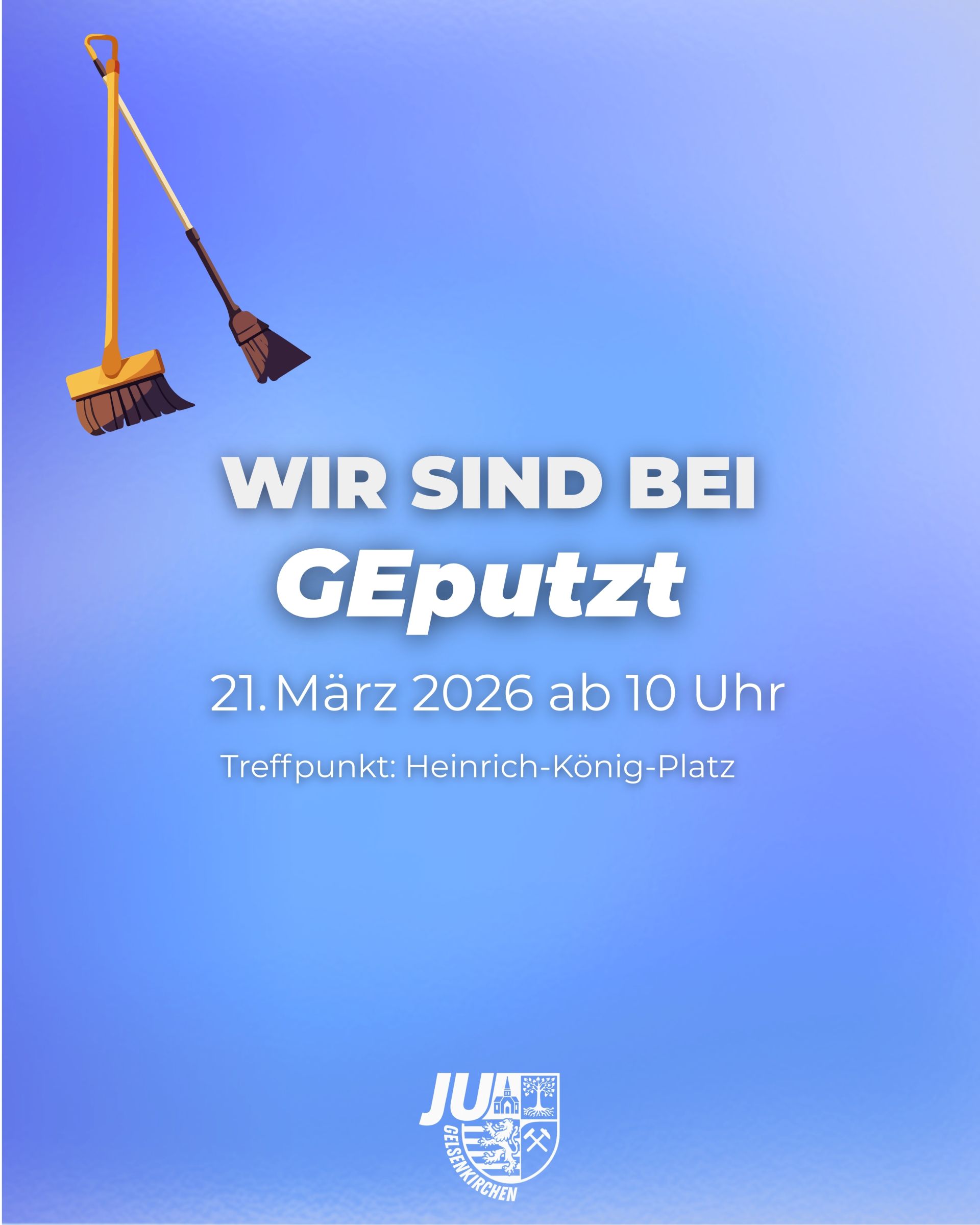 Wir als Junge Union GE beteiligen uns an der Aktion GEputzt und wollen damit ein starkes Zeichen für Engagement vor Ort setzen. Gemeinsam mit vielen freiwilligen Helferinnen und Helfern wird angepackt, um öffentliche Plätze sauberer zu machen und aktiv etwas für die eigene Umgebung zu tun.