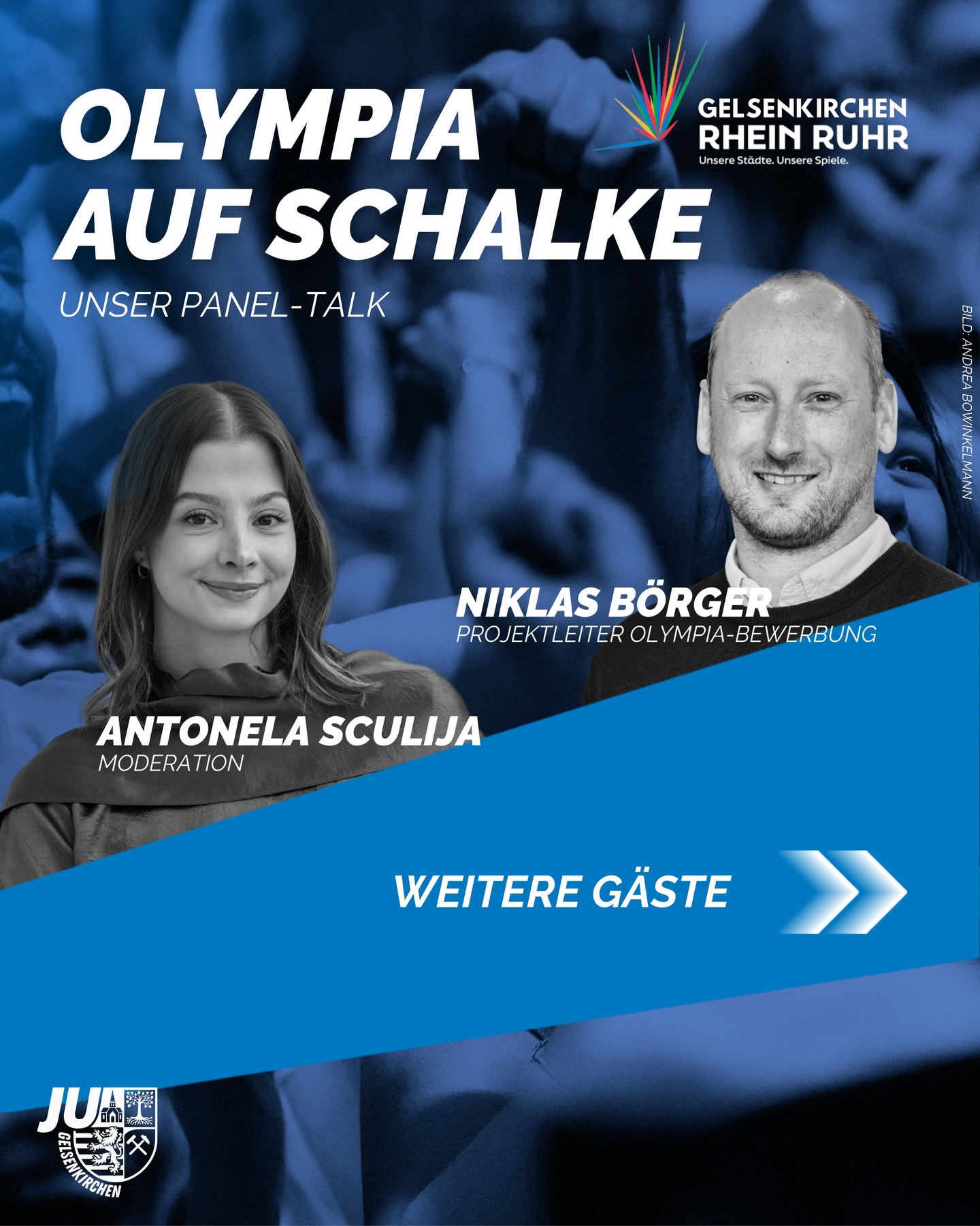 mehrOlympia in Rhein und Ruhr - und Gelsenkirchen als Austragungsort? 🏟️🏅 Welche Chancen bietet das für unsere Stadt, unsere Sportstätten und unsere Vereine? 🏊♀️ Wir diskutieren am 19. März 2026 um 18:30 Uhr mit 👉 Niklas Börger (Projektleiter Olympia-Bewerbung NRW) Timm Hündling (Leiter Spielbetrieb & Sicherheit S04) Kevin Gniosdorz (Landesvorsitzender JU NRW) und Andrea Henze (Oberbürgermeisterin Gelsenkirchen). Vorbeikommen und für Olympia begeistern lassen! 🔥 Anmeldung ist erforderlich - Plätze sind begrenzt. Alle Infos über den Link in der Bio! 🔗